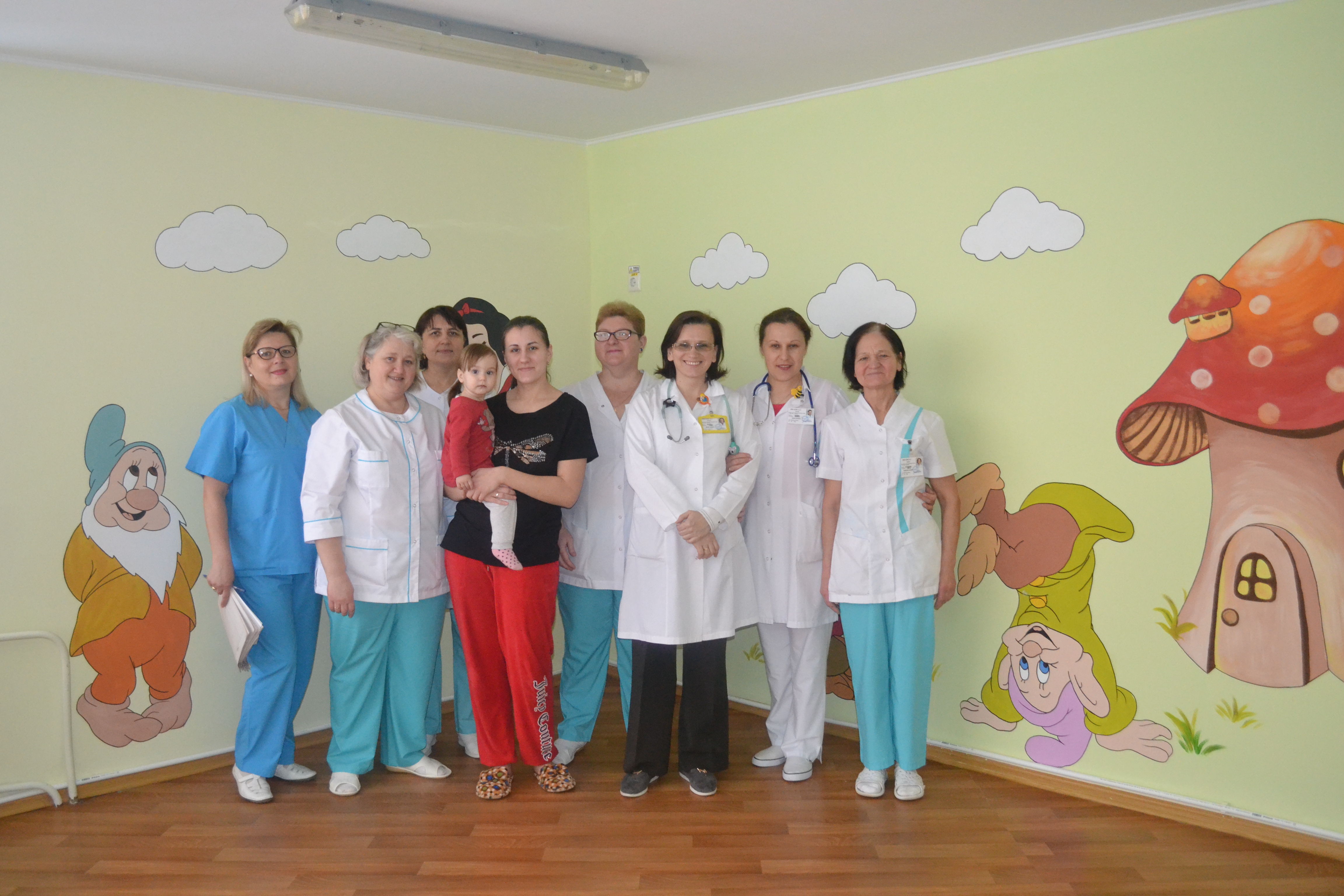 Imaginele din povești, așternute pe pereți vor crea buna dispoziție copiilor, diminuând starea de stres și contribuind la succesul tratamentului.