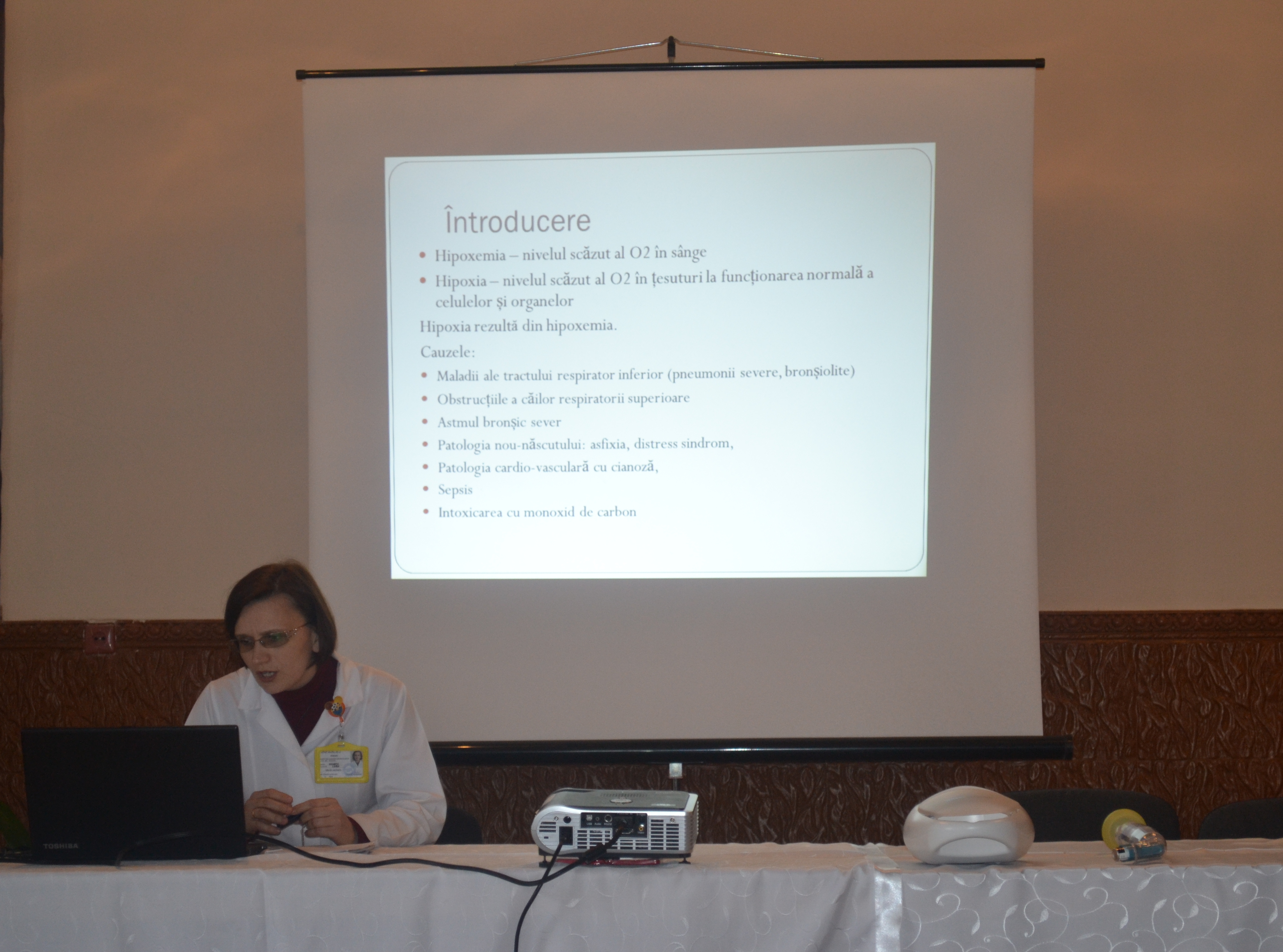 Dna Liuba NEAMȚU, d.ș.m., medic pediatru; a prezentat un raport cu privire la administrarea oxigenului la copii, prin care a menționat importanța monitorizării / evaluării continue de către asistenții medicali a parametrilor vitali ai pacientului.