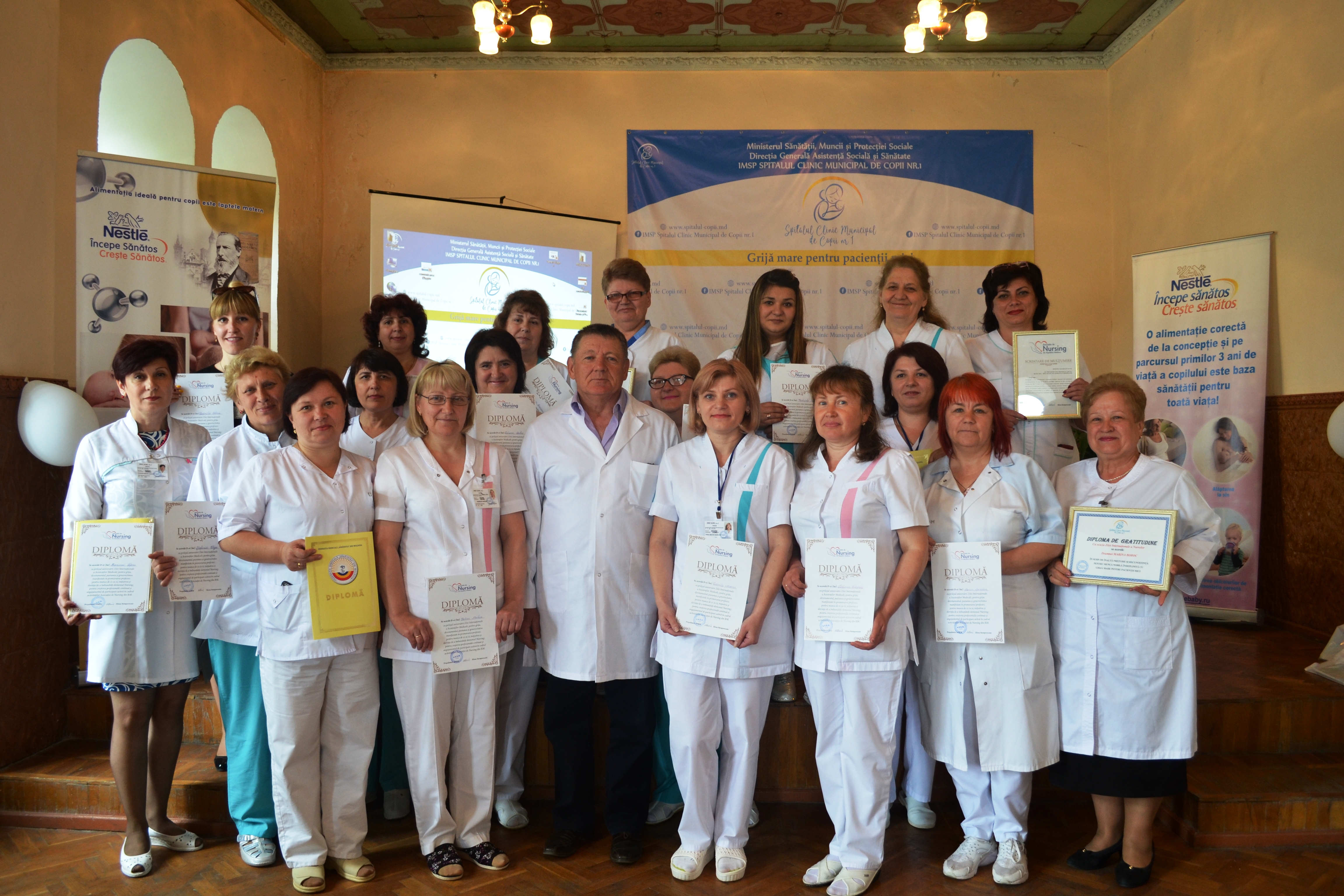 Cu ocazia Zilei Internaţionale a Nurselor asistenţii medicali din cadrul Spitalului Clinic Municipal de copii nr.1 au primit felicitări şi diplome de gratitudine în semn de înaltă prețuire şi recunoştinţă pentru munca nobilă îndeplinită cu grijă mare pentru pacienții mici.