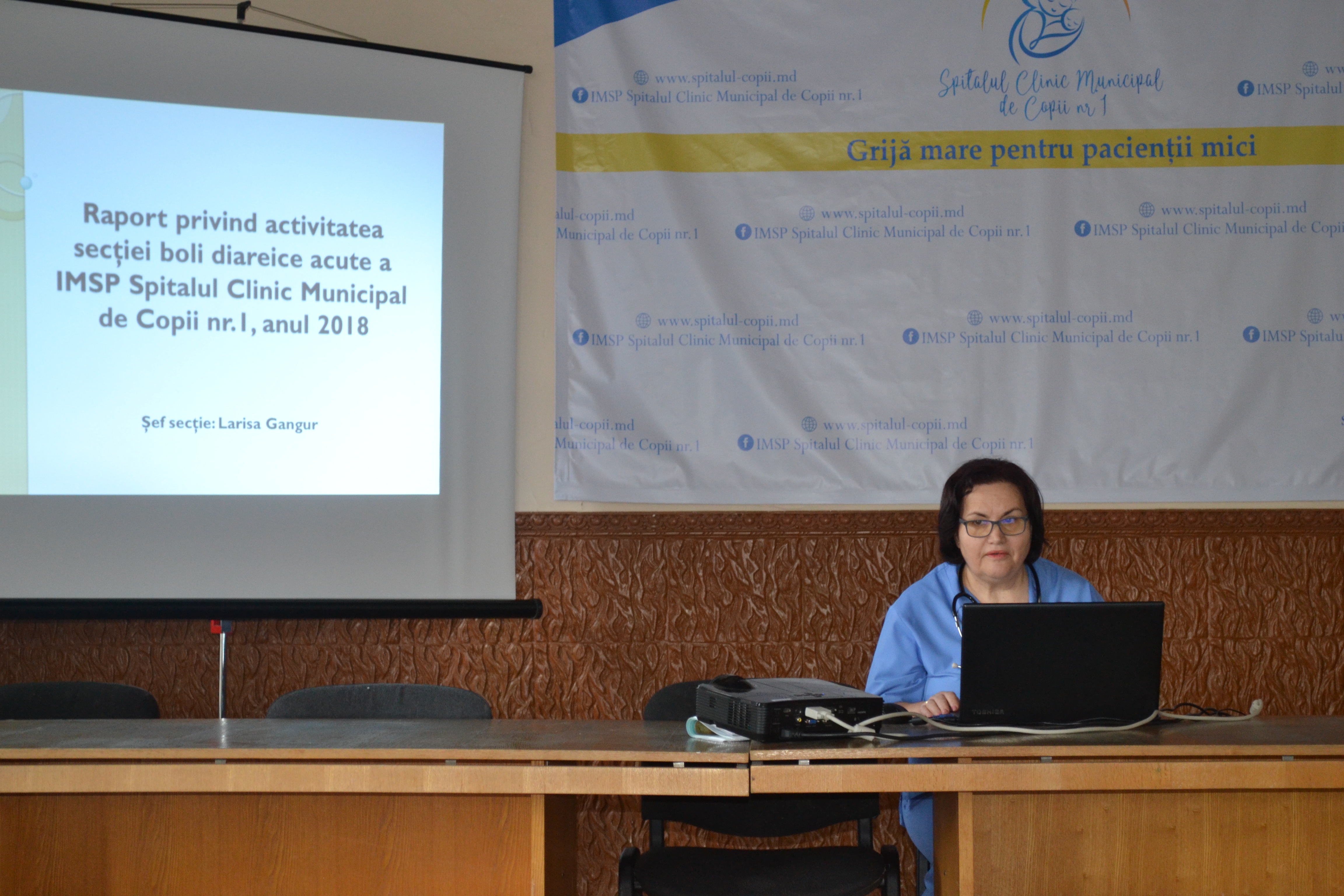 Șefa secției Boli diareice acute, copii sugari, dna Larisa GANGUR, a facut o ampla analiză a activității secției pentru anul 2018, cu evidențierea structurii clinico-diagnostice a copiilor internați în secție, cât și a principalelor momente de conduită clinică.