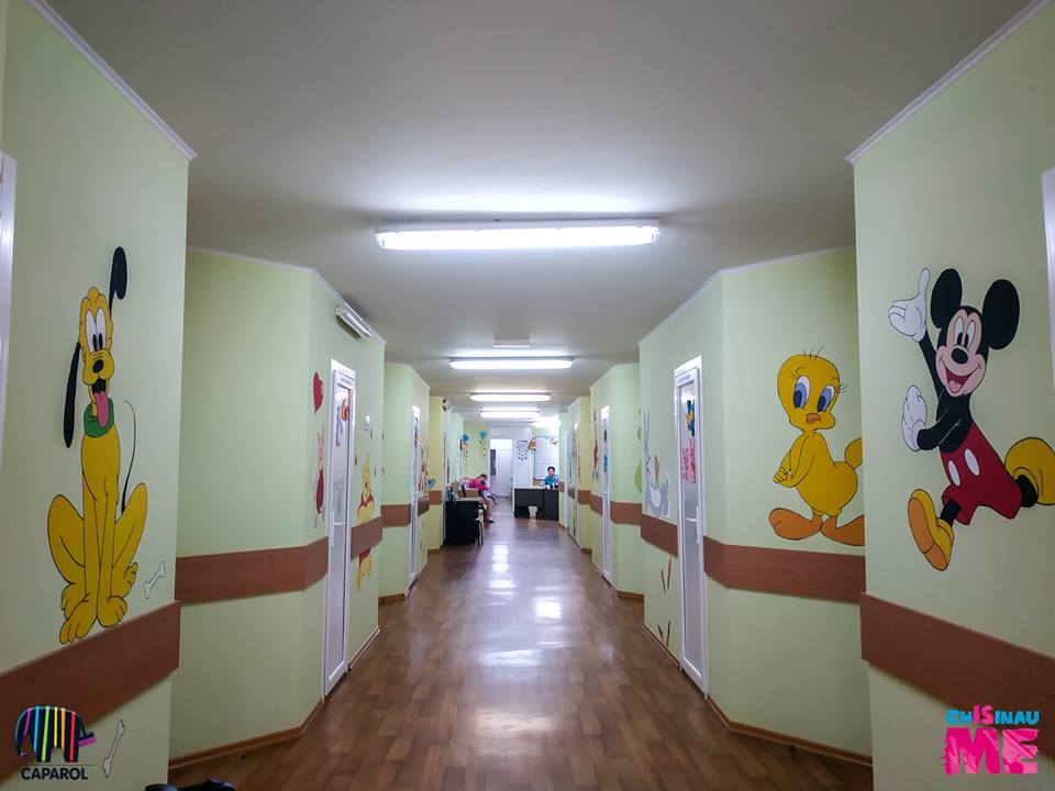 Imaginele din povești, așternute pe pereți vor crea buna dispoziție copiilor, diminuând starea de stres și contribuind la succesul tratamentului.