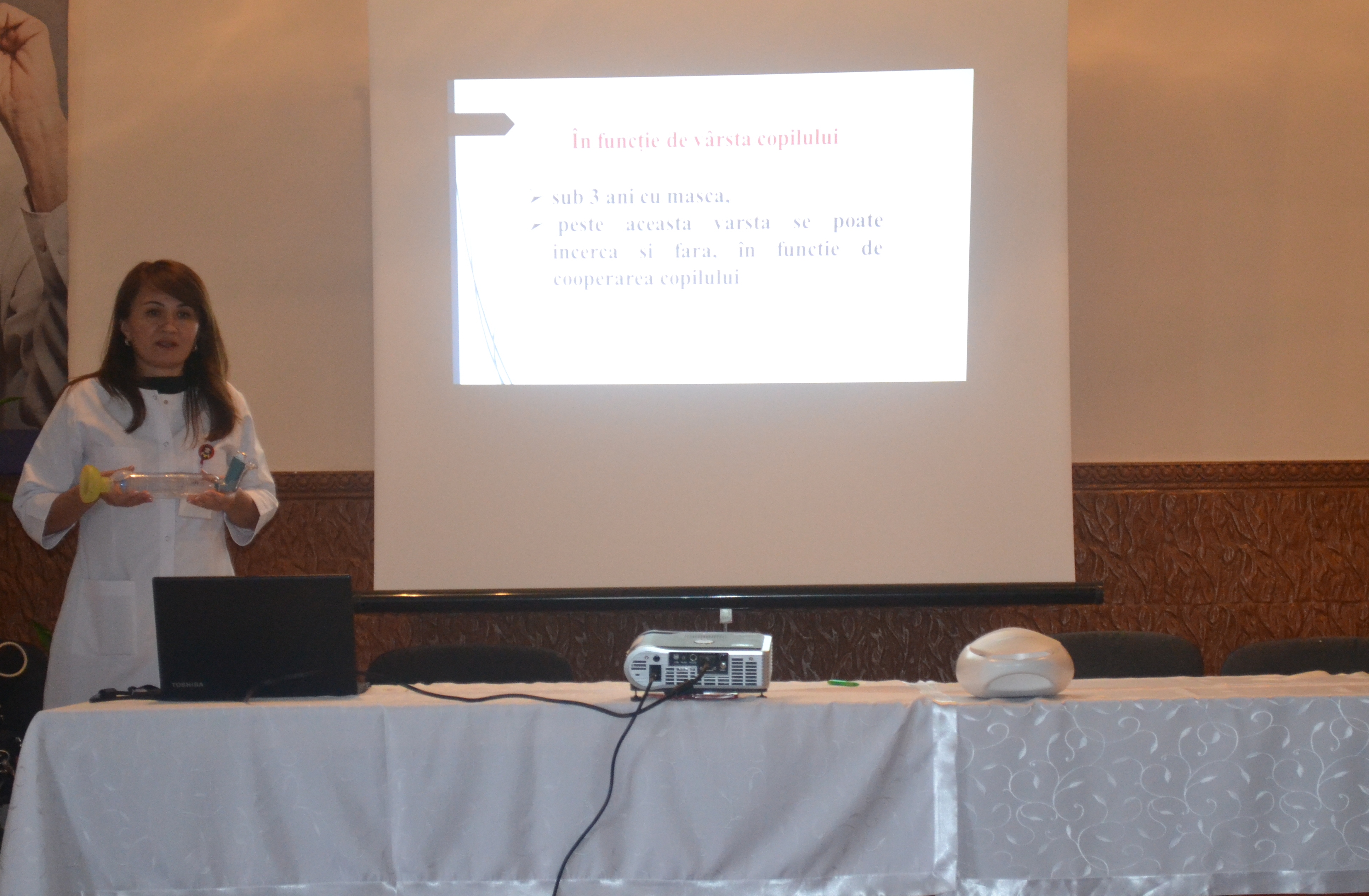 Dna Natalia GANUSCEAC, medic pediatru al clinicii, a prezentat abilitați practice de administrare a medicamentelor prin nebulizare, având ca scop clarificarea diverselor practici contradictorii aplicate uneori în tratamentul infecțiilor respiratorii acute la copii.