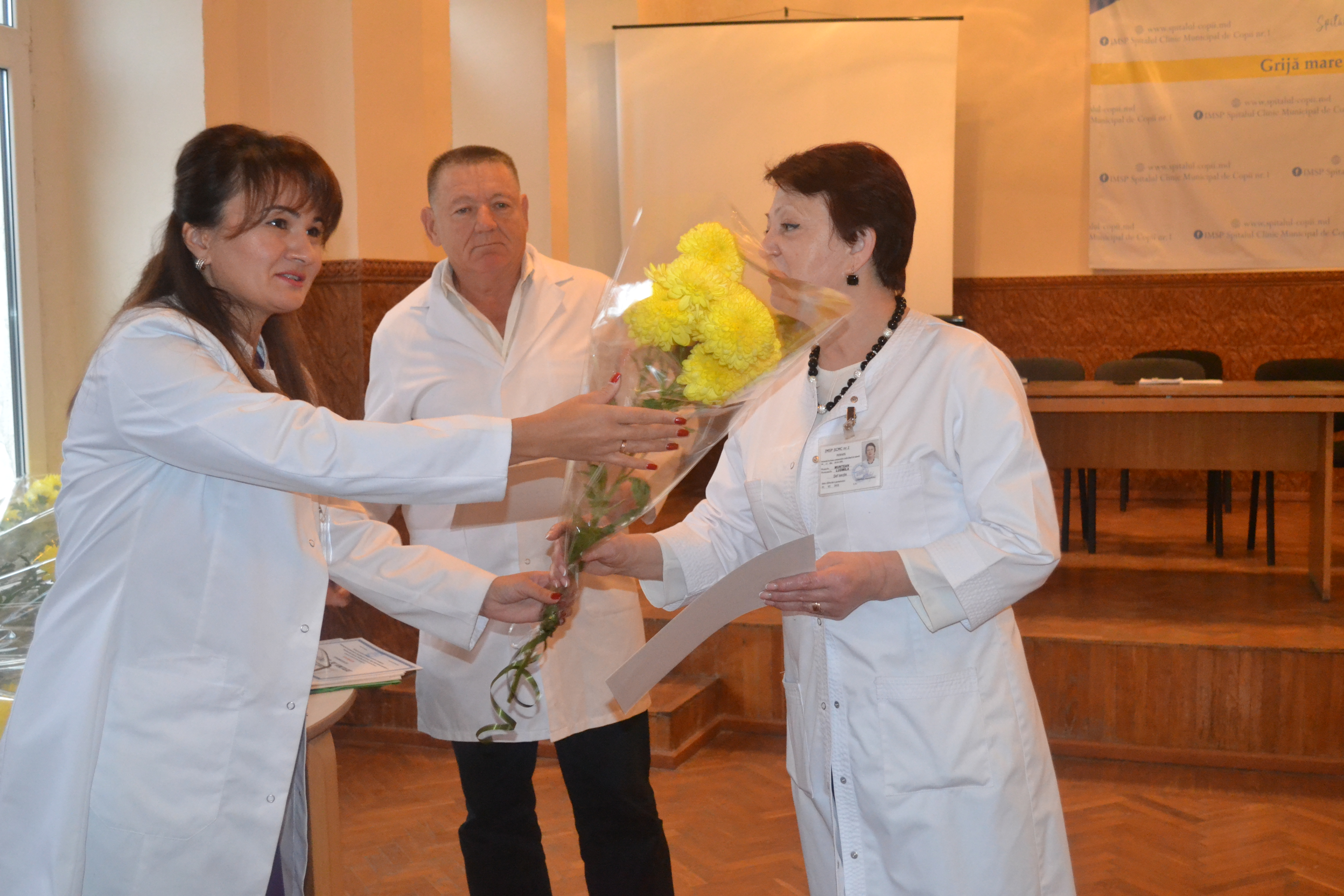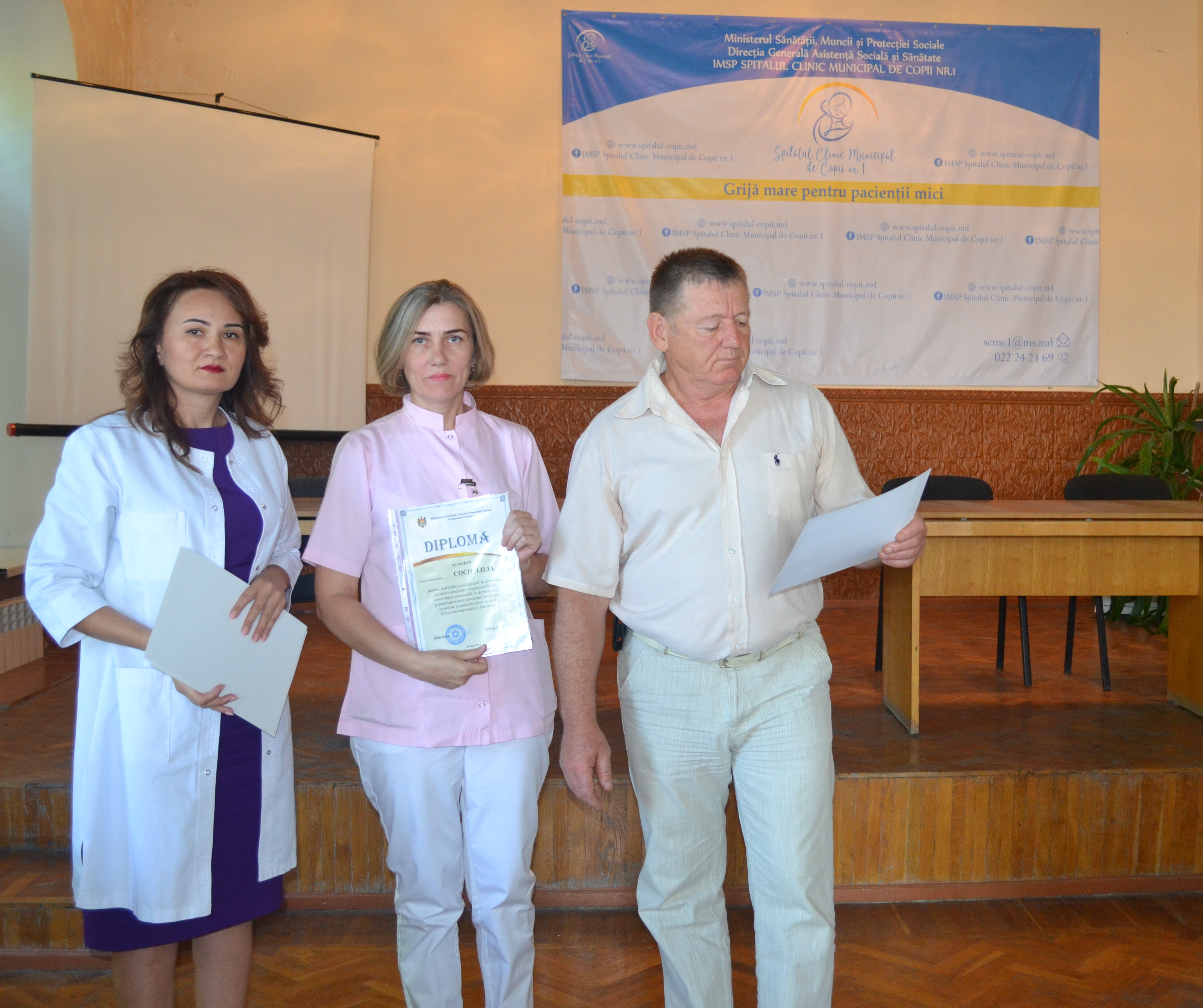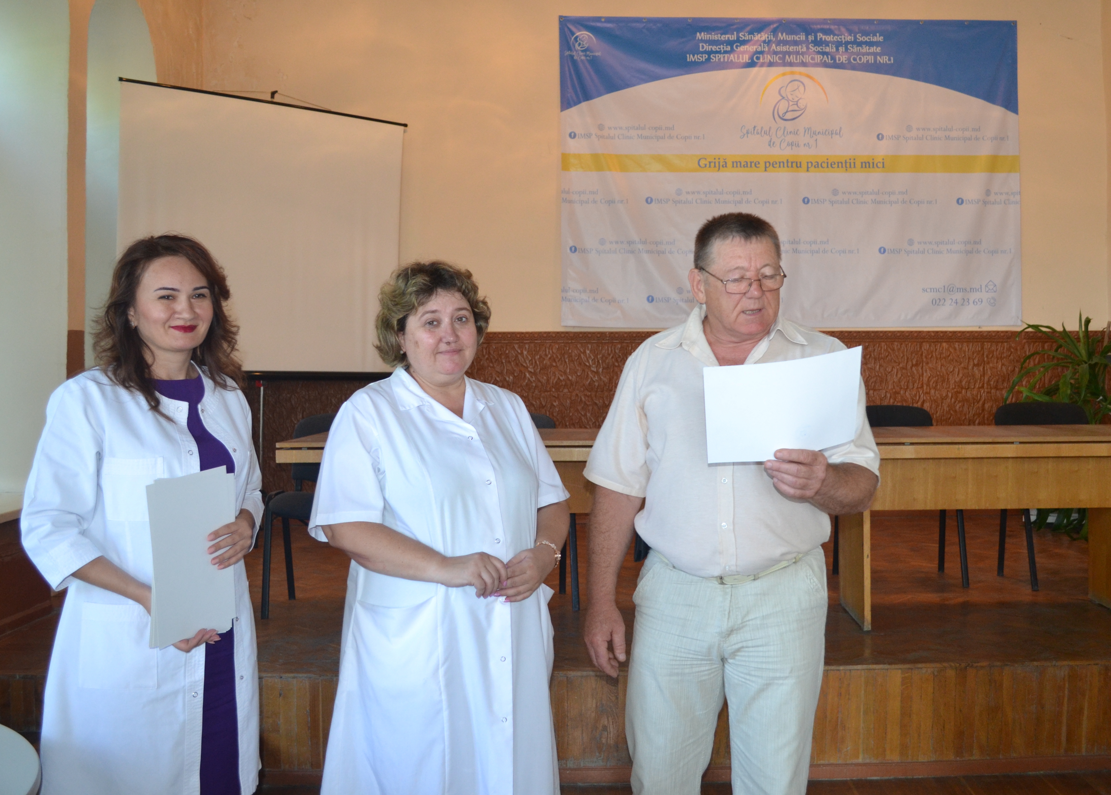 La eveniment au fost prezenți asistenți medicali din cadrul Spitalului Clinic Municipal de Copii nr.1.Pentru merite deosebite în domeniul de sănătate, asistenții medicali, dna Lilia COCIU, asistent medical superior și dna Marina BOBOC, asistent medical șef au fost menționați cu diplome de onoare ale Ministerului Sănătății, Muncii și Protecției Sociale, iar cu diplome din partea Federației Sindicale au fost menționate șașe asistente medicale.